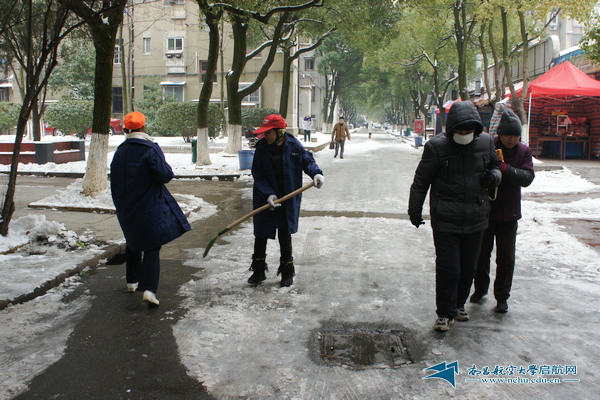 上海路校区物业职工冒严寒铲出一条“便民之路”(摄影 武璟)