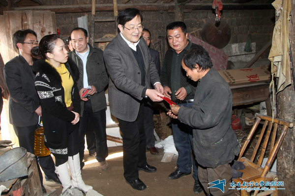 党委书记傅克刚、副校长唐星华一行春节前夕走访慰问南丰县东坪下堡村困难群众。