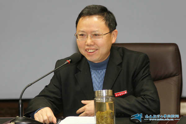 校长余欢从四个方面对加强内涵建设作了阐述,一要转变发展观念,转变过去一些习惯性的思想观念,形成学校的特色,树立符合学校特色、实际和社会需要的高等教育质量观,真正把这个质量观贯彻到人才培养、科学研究、社会服务和文化传承中去;二要坚持以人为本,提高人才培养水平,确立学生的主体地位,发挥教师的主导作用,把每一项改革和制度内化为有利于教师潜心育人、学生热爱学习的动力;三要突出办学特色,增强核心竞争力,做到学校有特点、专业有特色、学生有特长;四要提高国际化水平。