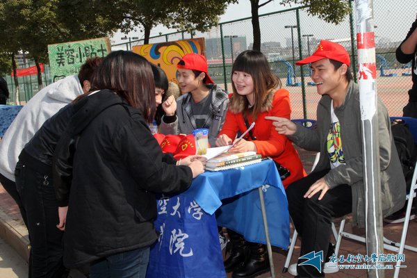 音乐学院利用自己的专业优势,通过义务传授一些基本的保健及化妆技巧,提升大学生的外在形象。他们比较活泼,提出自己的活动口号:“美丽源于健康,你为自己代言。”在学院的展台旁边,有两块展板,上面分别有美容小贴士、化妆小技巧。111531班的熊雪薇说:“因为专业原因,我们对服饰搭配、营养保健、生活起居、化妆技巧相对了解得更多,我们通过提供一些咨询,让周围的人更注重保健及个人形象。”