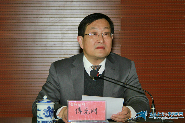 傅克刚代表学校领导班子作了2012年度工作总结。他说,一年来,学校在教育教学、学科建设、科学研究、人才队伍建设、对外影响、民生工程及平安校园建设等方面不断取得新的进展,呈现出良好的发展态势;一年来,学校还在思想建设、基层组织建设、干部队伍建设、作风建设、反腐倡廉建设、制度建设及大学生思想政治教育等工作中不断提高科学化水平,开创了新的局面。在肯定成绩的同时,学校也必须清醒地认识到工作中存在的问题和不足,主要表现在贯彻落实科学发展观有差距,坚持民主集中制有差距,弘扬优良作风、密切联系群众有差距,党风廉政建设责任制落实不到位及认真执行干部选拔任用工作条例有差距等方面。