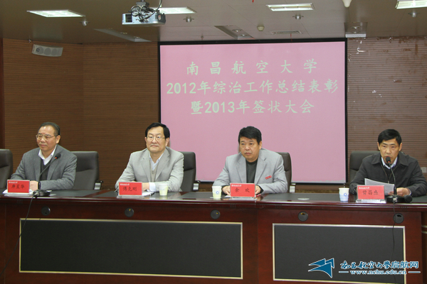 启航网讯 4月26日,2012年度综治工作总结表彰暨2013年度综治责任状签状大会在六楼视频会议室召开。全体在校校领导,各综治责任单位责任人、专兼职综治干部参加。