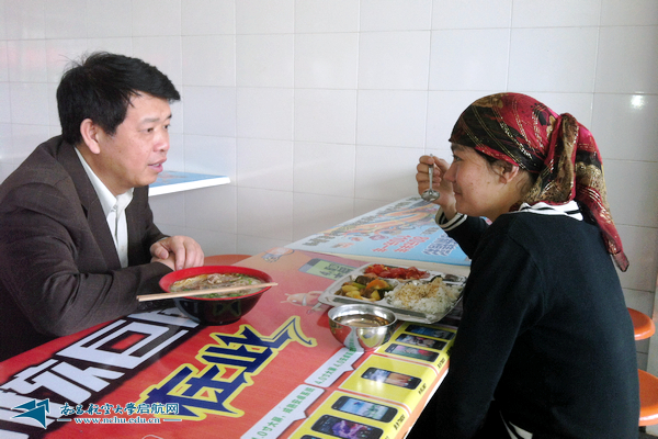 启航网讯 5月3日中午,校长余欢、副校长刘卫东来到学校三食堂清真餐厅,与少数民族学生共进午餐,了解他们的学习生活状况及对清真餐厅的意见和建议。