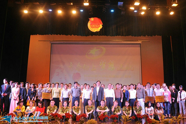 启航网讯 为纪念中国共产主义青年团成立91周年,表彰在共青团工作中涌现出的先进组织、优秀团员团干部,激励青年奋发拼搏,学校于5月6日晚在大学生活动中心礼堂隆重举行了以“青春向上,梦想远航”为主题的庆祝建团91周年暨五四表彰大会。校党委书记傅克刚出席大会并为获得“五四红旗团委”的单位颁奖。组织部、宣传部、教务处、学工处、科技处、文化素质教育中心等职能部门负责人,各学院党委副书记、团委书记、团员青年代表等近千人参加了大会。