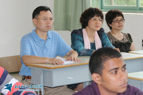 何兴道一行聆听2012级留学生《高等数学》课。