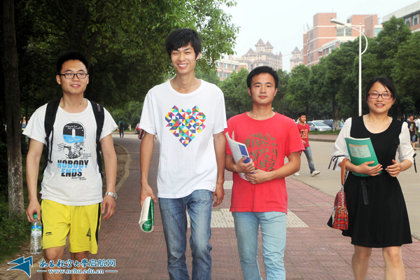 刘辉与同学们走在去图书馆的路上。(摄影 余尚峰)