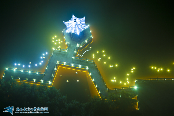 北京校友会捐建的天一亭工程新增的亭顶亮化和湖面美化亮化及原遗留的栈桥内侧亮化工程完工。