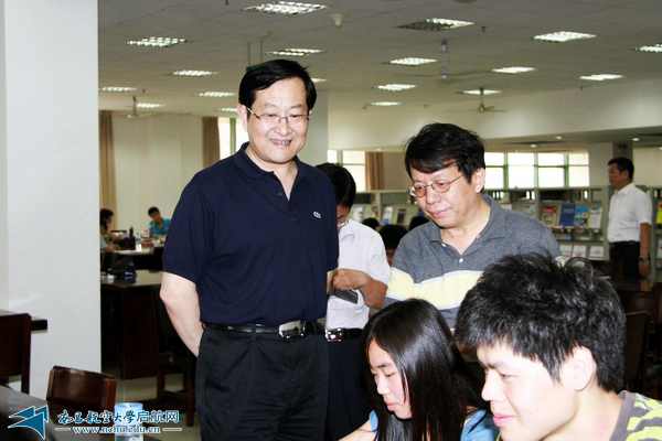 在图书馆,校领导现场查看了学生自习室空调等设备的配置使用情况,详细询问了目前还存在的主要问题。在图书馆社科阅览室,傅克刚与学生亲切交流,关切的询问学生在自习室学习热不热。对图书馆阅览室的充分利用、空调等设备的改造使用、图书馆文化氛围的布置等问题提出了指导性的意见和建议。