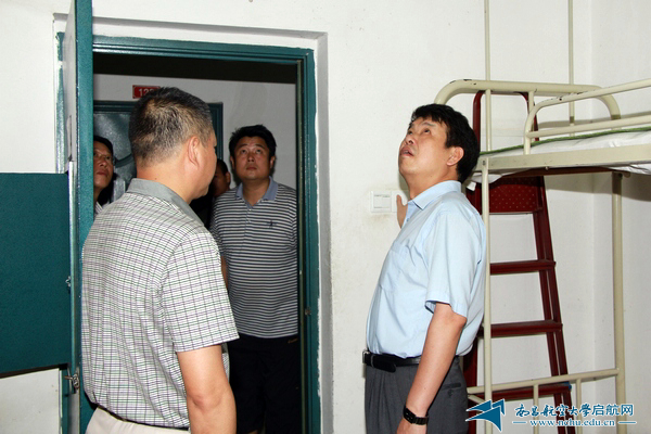 余欢在国防生寝室仔细查看了电扇运行情况,嘱咐海军学院负责人要及时解决。