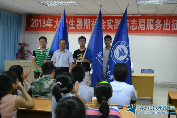 启航网讯 7月3日上午,学校2013年大学生暑期社会实践与志愿服务出征仪式在大学生活动中心111室举行。学校副校长唐星华出席,并为赴井冈山全国青少年革命传统教育基地实践团、全国重点团队经管学院赴宜丰县“我的中国梦·科技支农”服务团、全省重点团队“我的中国梦基层实践”软件学院赴南丰县实践服务团授予了队旗。