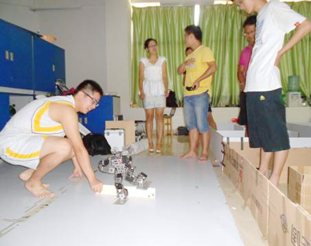 大赛在即,参赛队员和指导老师都在全力以赴做最后的准备和调试,使自己的机器人达到最佳状态。“我们将学到的知识及时用于实践,同时,不足之处及时加以学习,我们认为学习到了好多,还锻炼了团队合作能力。”一位参赛同学说。