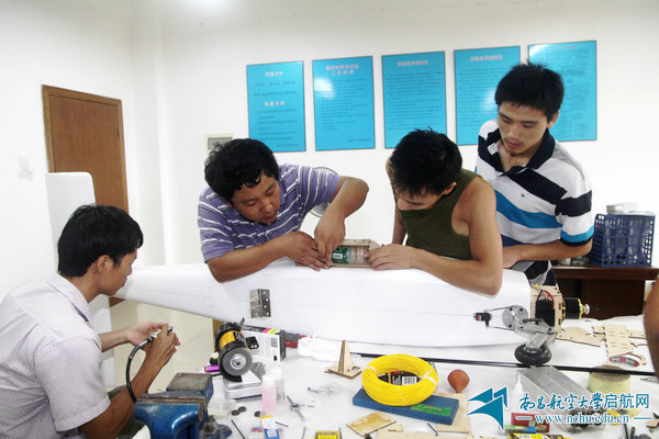 蒋阳说:“周末和暑假,我们比平时更忙。平时要上课,老师和学生的时间都是零零星星的。只有周末和暑假,我们才有整块的时间进行研制。我们的老师和学生都很不错,能够吃苦耐劳。”整个暑假,无人机研究所的7名老师一直在工作室,学生有时候冒着高温坐公交车到市里买材料。“参赛方案早已制定,但从纸质方案到具体飞机成型试飞,中间有很多的实际问题需要解决。这次与以往最大的不同是,我们团队自己解决了飞机的导航系统和控制策略。目前我们正在安装、调试的这架飞机,是我校迄今为止参赛无人机中技术含量最高、最复杂的机型。”蒋阳介绍说。