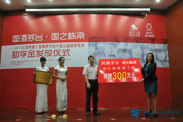 江西省“国酒茅台·国之栋梁——2013·希望工程圆梦行动大型公益助学活动”助学金颁发仪式在我校举行。