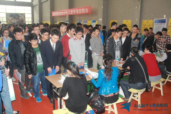 航空制造工程学院的吴松同学对此次招聘会准备已久,希望为自己寻找到一份从事车间一线设计、生产的工作。他说:“深入基层是最好的锻炼方式,希望自己能从企业的基层做起,学有所用。”新乡航空工业(集团)有限公司招聘代表宋主任介绍:“目前公司越来越重视学生的实践能力、专业能力、校内外活动经历和参赛经历等,优先考虑综合素质较高的毕业生。计算机二级、英语四级等证书也是毕业生必备的应聘条件,昌航有很多优秀的毕业生,提高录用标准也是为了吸纳更好的人才。”与往年的招聘会相比,本次招聘会中部分用人单位提高了用人标准,例如中航工业航空动力机械研究所从去年开始只需求硕士研究生,天津航空机电有限公司招聘也面向我校硕士研究生。