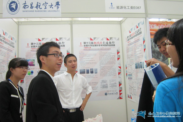 “挑战杯”一等奖获得者环化学院冷乐辉项目组在比赛现场。