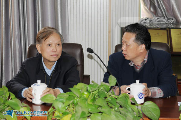 启航网讯 11月28日下午,中国工程院院士邱定蕃在省科技厅重大专项处张维敏处长的陪同下来校参观指导。邱定蕃院士首先参观了江西省持久性污染物控制与资源循环利用重点实验室,随后在Q302研究室与环境与化学工程学院全体院领导和相关专业老师进行了座谈。座谈会上,学校副校长罗胜联首先代表学校对邱院士的到来表示热烈欢迎,并和其他专业老师一起相继介绍了学校在化学领域取得的重大成绩,介绍了江西省持久性污染物控制与资源循环利用重点实验室的重大研究成果,并重点就目前的研究瓶颈和存在的问题与邱院士进行了深入地交流。最后,邱院士肯定了学院和重点实验室目前的研究方向、具备的科研基础和科研条件,充分肯定了目前所取得的科研成果,并为当前学院以及重点实验室的定位以及未来研究的着重点指明了方向。他强调,科研的最终目标应转化为生产力,校企联合及科研成果的转化应成为当前高校科学研究的目标。