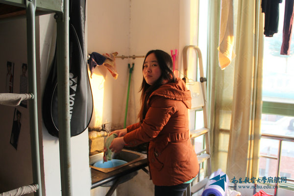 居住在学生宿舍6栋6层的同学向我们展示高层供水情况良好。(摄影 张春晨)