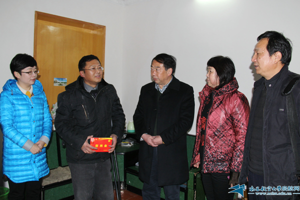 省总工会副主席柯进水一行来校看望困难职工,学校纪委书记王玉芝陪同走访慰问。(摄影 向瑛)