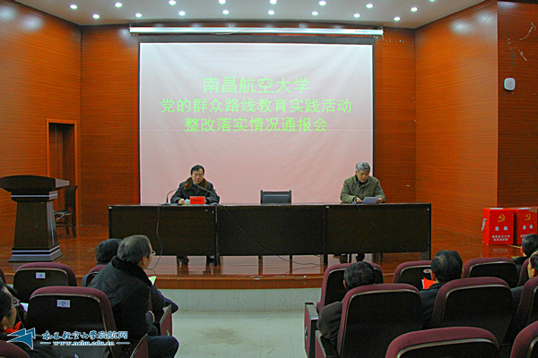 会上就卧龙岗宾馆装修、办公楼电梯改造项目处理情况,科技学院进驻共青大学城情况,实践活动九大专项治理情况及师生意见建议比较集中的部门整改落实情况进行了专项汇报,接受与会人员质询,并现场进行民主测评。