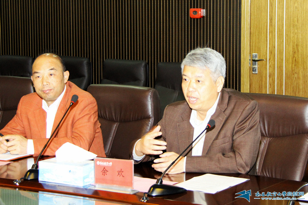 校长余欢对陈保东一行六人来校调研表示热烈的欢迎,并介绍了学校的校情、发展思路、改革措施。陈保东对学校为此次调研所作的精心准备表示感谢,介绍了沈阳航空航天大学的相关情况。
