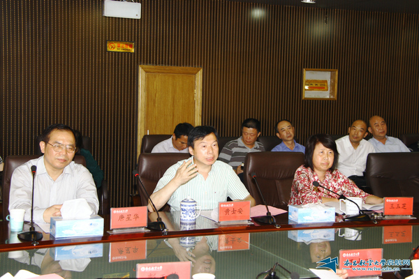 黄士安在情况汇报中谈到了近年来学校校务公开民主管理的实践历程。他指出,学校一贯重视校务公开工作,经历了初步试点、全面推进、深化完善、巩固提高四个阶段,逐步形成了校务公开工作机制,迈入了制度化、程序化、规范化的轨道。近年来,学校获得了“全国厂务公开民主管理先进单位”和“江西省厂务公开民主管理先进单位”等称号,成为中纪委党务校务公开联系点单位。