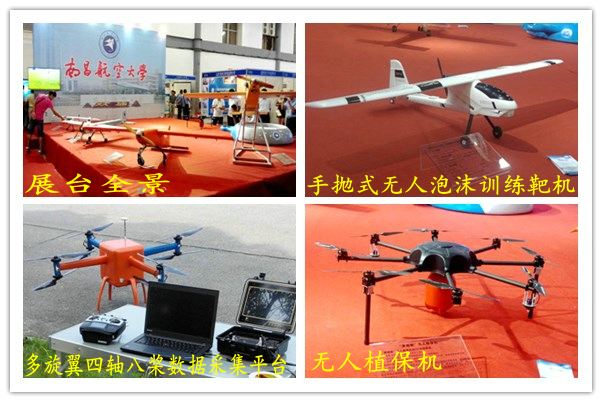 启航网讯 由中国人工智能学会、南昌市人民政府、江西省工业和信息化委员会、中航航空装备有限责任公司公司联合主办的“2014中国(南昌)智能博览会暨第四届中国智能产业高峰论坛”于8月15-17日在南昌国际展览中心成功举办。我校无人机所七种型号的固定翼、多旋翼无人机惊艳亮相,。在本次智博会上,我校有获得第一、二届“中航工业杯——国际无人飞行器创新大奖赛”固定翼类竞技赛大奖的“昌盛”号和“G20” 型通用无人机及近期研发的多旋翼四轴八桨数据采集平台和手抛式泡沫无人训练靶机等七款无人机参展,并应邀进行了直升机和花式固定翼航模机的飞行表演,让航空爱好者近距离体验了智能航空的新成果,极大地彰显了我校的航空特色。