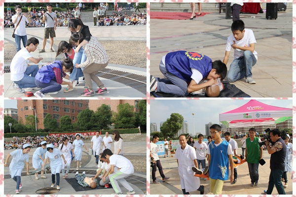 活动开始后,在省红十字会救护培训中心老师的指导下,校红十字会志愿者和校医院医护人员通过模拟场景,向大家展示了心肺复苏、中暑晕厥、骨折固定、出血止血、扭伤等突发事故的急救知识,让现场观众在欣赏生动形象的表演同时接受了一次救护常识的教育。活动最后,在场嘉宾为急救演练活动中表现优秀同学颁发了“急救新星”奖状并合影留念。