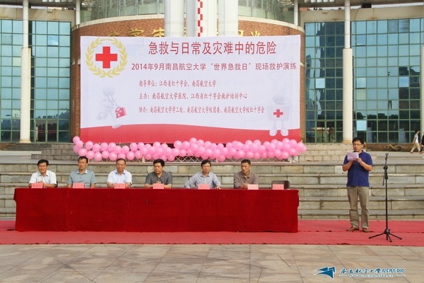 启航网讯 9月20日早上8:30,在学校喷泉广场,一场由南昌航空大学医院,江西省红十会会培训中心共同主办的“世界急救日”现场演练活动正式拉开序幕。省红十字会专职副会长欧阳平、校党委副书记黄士安,副校长唐星华出席活动并讲话,学校有关职能部门负责人和1700余名2014级新生观看了演练。