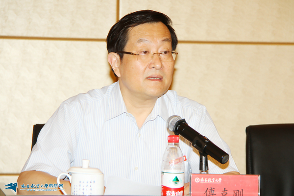 傅克刚首先代表学校党委和行政,向以曹春晓院士为主任委员的第七届学术委员会和黎明教授为主任委员的教学指导委员会多年来为学校快速发展做出的重要贡献表示衷心的感谢,向以柯黎明教授为主任委员的新一届学术委员会的成立表示热烈祝贺!