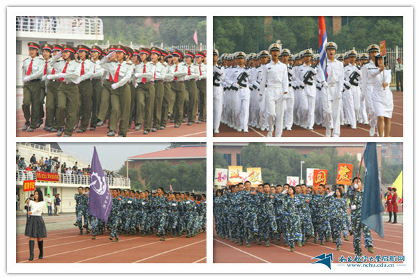 亮丽的鲜花方阵队、整齐的彩旗方阵队、雄壮的教官方阵队及各学院代表队脚步稳健地步入运动场。