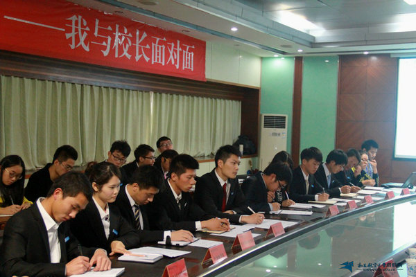 校学生会和航制学院学生会的五位学生干部代表分围绕“学生干部如何发挥桥梁纽带作用”的主题,分别从“传达学校政策”、“协助信息公开”、“参与民主管理”、“自我监督评价”等几个不同方面介绍了开展调查研究和同学们交流思考的成果,并就各自议题畅谈如何发挥好学生干部的桥梁纽带作用。余欢认真听取学生的发言并边听边记,不时插话询问细节,并就学生干部作用发挥的具体途径、措施与方法等方面同他们展开了热烈讨论。