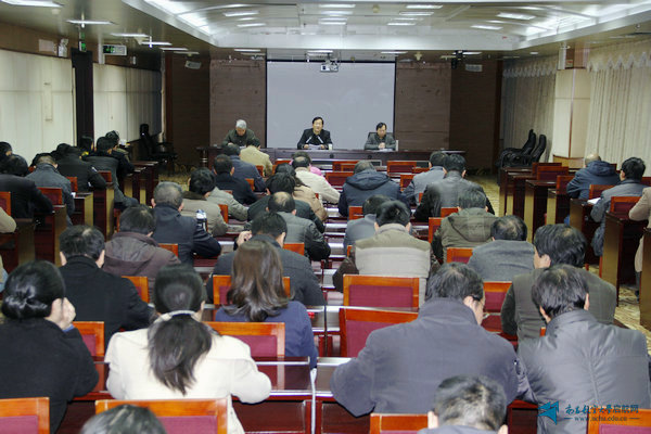 学校召开科级干部调整与党的群众路线教育实践活动整改布置会。(摄影 张春晨)