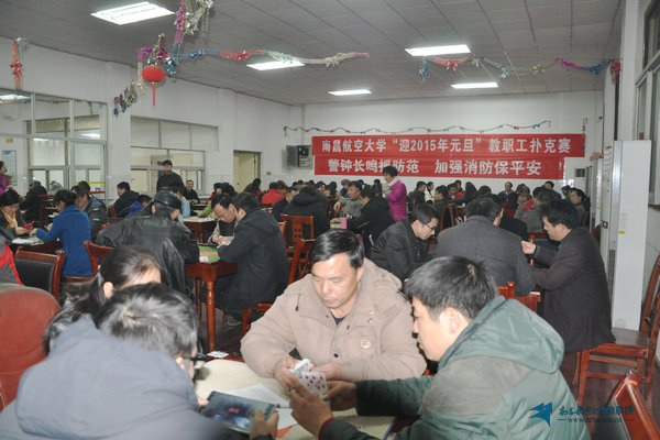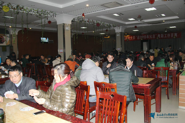 启航网讯 为喜迎2015年元旦,丰富教职工节日期间业余文化生活,加强和增进教职工之间的交流与友谊,提高学校升级扑克牌竞技水平,学校工会、教职工桥牌协会、离退休处、资产公司在迎新年之夜联合举行了南昌航空大学“迎2015年元旦”教职工升级扑克比赛。