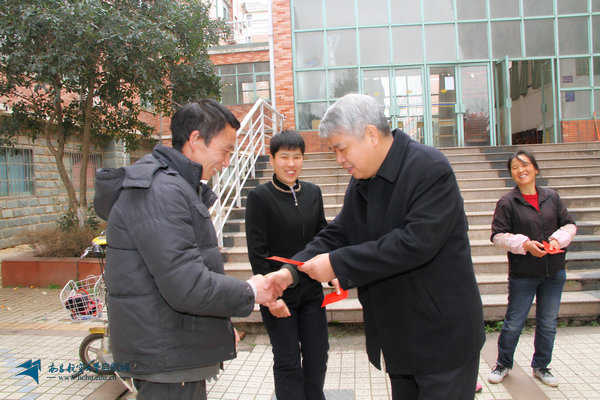 今年春节期间,学校上百名干部职工坚守在工作岗位上,以辛勤的工作确保校园和谐平安。傅克刚、余欢分别到上海路校区、前湖校区能源站、校医院、门岗、教学楼、宿舍楼、保卫处监控中心等处进行走访慰问,每到一处,都仔细询问春节期间的工作情况,并同大家一一握手,送上慰问金,感谢他们无私奉献,坚守岗位,衷心祝愿他们及家人新年快乐、羊年大吉。各部门值班人员也纷纷表示,十分感谢学校和领导的关心,将认真履行工作职责,确保假期校园和谐稳定。