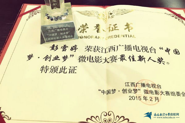 我校学生彭雪婷在江西省首届“中国梦 创业梦”微电影大赛中喜获佳绩