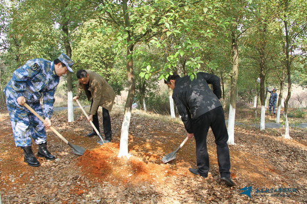 另讯,在学校卧龙山“国防林”,驻校选培办与国防生教育学院共同举行了主题为“植树育林、感恩母校”的“2015届毕业国防生植树留念活动”,80多名师生共同参与了活动。活动号召国防生为建设富裕和谐秀美江西做出积极贡献。现场,师生们对“纪念树”进行培土修枝和更新植树牌,而后每个区队种下4棵“感恩母校”的香樟树。“国防林”里热火朝天,一片忙碌景象。