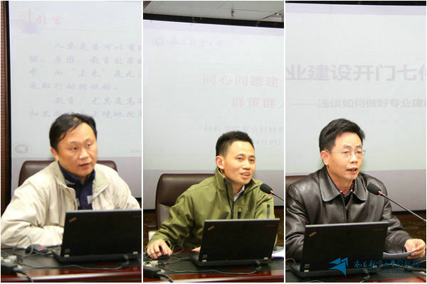 软件学院舒坚、材料科学与工程学院复合材料与工程系谢小林、教育教学评估中心王龙峰,依次在会上发言,围绕专业建设,分享自己在工作中的教学管理经验,为学校的教学改革、专业建设积极献言献策。
