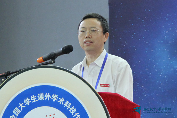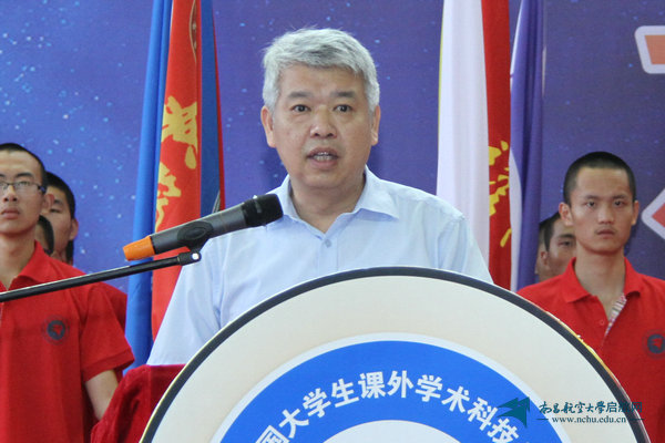 余欢校长在致辞中代表南昌航空大学对大赛的顺利举办表示衷心祝贺,对各位来宾的到来表示热烈欢迎。简要介绍学校的发展历程后,余欢指出,一直以来,我校十分重视大学生课外科技创新能力的培养与提升。近五年来,学校共获省部级以上科技竞赛奖1139项,其中国家级奖励354项、大学生授权专利115件、大学生发表论文622篇;在第十三届“挑战杯”全国大学生课外学术科技作品竞赛决赛中获得一等奖,保持全国“挑战杯”发起单位称号;大学生科技创新团队“环境光催化及资源循环利用团队”被命名为国家级大学生“小平科技创新团队”,获得中国青少年科技创新奖励基金的资助;学校新建的4000平方米大学生创新创业基地,荣获“江西省大学生创新创业示范园”称号。