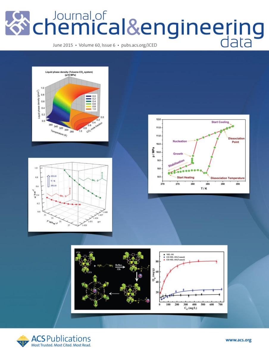 化学工程数据库杂志封面(J. Chem. Eng. Data, 2015, 60 (6), pp 1732–1743,DOI: 10.1021/je501115m)