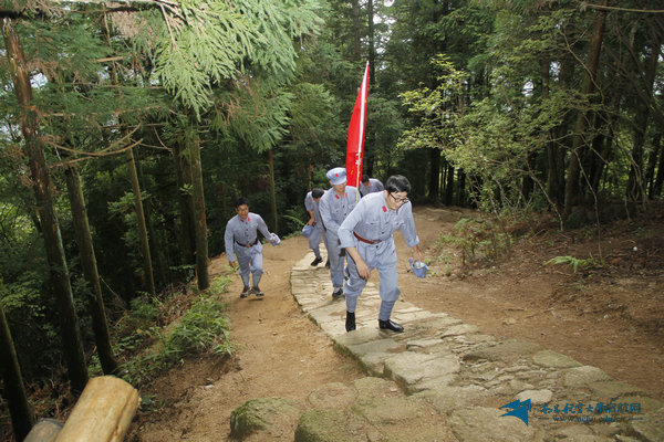 全体学员沿着当年朱德等老一辈革命家的足迹,走在红军挑粮小道上