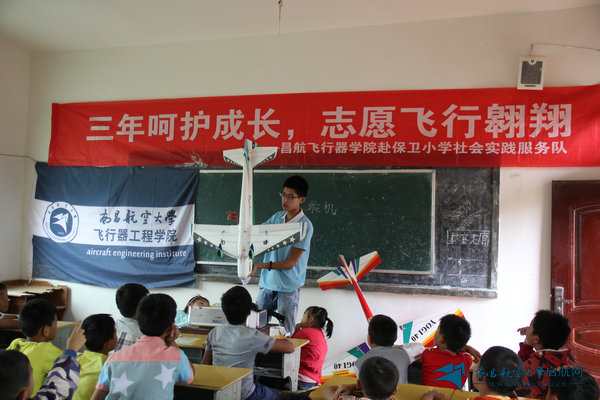学校“三下乡”服务队在小学生当中传播航空文化(照片由校团委提供)