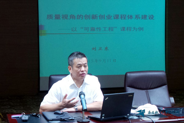 随后,刘卫东以“质量视角的创新创业课程体系建设---以可靠性工程课程为例”为题,结合开展创新创业教育改革工作谈经验体会并做动员报告。他指出,深化高等学校创新创业教育改革,是国家实施创新驱动发展战略、促进经济提质增效升级的迫切需要,是推进高等教育综合改革、促进高校毕业生更高质量创业就业的重要举措。刘卫东分别从国家政策、教育理念、质量标准、培养机制等方面对创新创业教育改革进行了深入解读,要求每位与会人员务必高度重视,领会文件的精神实质。尤其是当前要在创新创业教育课程的教学方法、教学内容、教学组织、教学平台建设等多方面需要改革创新,为全面提升教学质量做好铺垫。