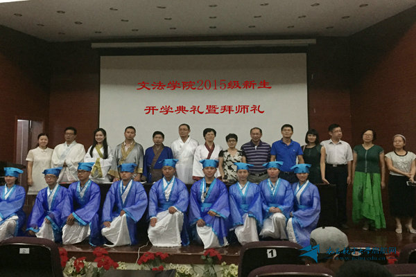 启航网讯 9月17日晚,一场独具中国传统文化特色的拜师仪式在学校逸夫楼报告厅举行。拜师礼作为文法学院2015新生开学典礼特色环节,首次校内呈现。活动在师生、家长中反响强烈,深受欢迎。