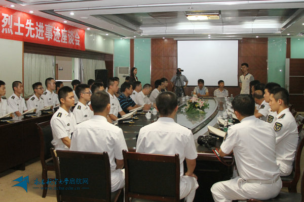 报告会在激昂的《人民海军向前进》中落幕。随后,报告团全体成员与我校师生代表召开了姜涛、鲁朋飞烈士先进事迹座谈会,师生代表纷纷表示将以姜涛、鲁朋飞烈士为榜样,今后努力工作和学习,励志成才,为祖国的发展繁荣贡献力量。