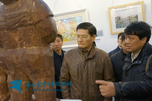 展览期间,江西省委常委、宣传部长姚亚平莅临南昌航空大学展区参观指导。姚亚平详细询问了有关设计作品和相关专业办学的情况,对我校教师作品的艺术水平给予了高度赞誉,对学校为江西艺术教育和文化艺术产业创新发展的努力给予了充分肯定。