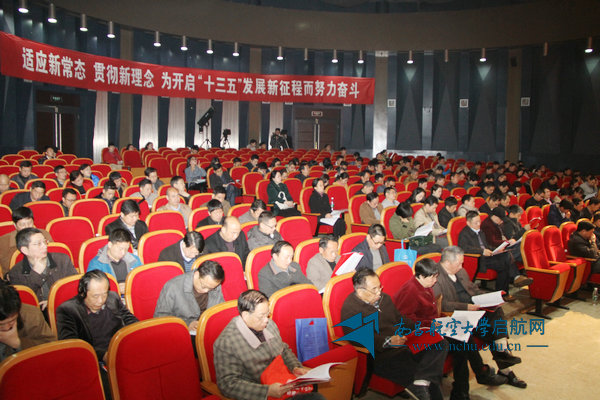 报告第二部分认真分析了当前学校面临的形势,强调指出“高等教育战略地位日益凸显、国防航空产业发展明显提速、江西发展后发优势显著增强、学校现有发展条件更加优越”等均为我校改革发展提供了难得的机遇;但同时指出,更应清醒地认识到面临的挑战和自身存在的不足,如校际竞争更加激烈、体制机制亟待改革、航空特色有待加强、质量结构亟需优化等,需要全校上下“贯彻创新理念、挖掘发展潜力,贯彻协调理念、释放发展活力,贯彻绿色理念、转变发展方式,贯彻开放理念、优化发展格局,贯彻共享理念、普惠发展成果”,以新的发展理念引领学校各项事业的发展。