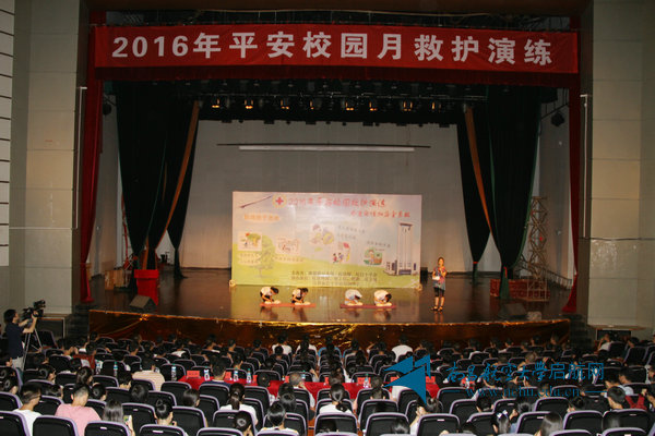 启航网讯 6月24日晚,学校在大学生活动中心礼堂举行2016年平安校园月救护演练活动。副校长聂威,红十字会与红新月会国际联合会东亚地区代表处卫生经理陈红,江西省红十字会救护培训中心主任胡好君,宣传部、学工处、团委、保卫处(综治办)、医院等部门(单位)相关负责人,以及400名学生参加活动。