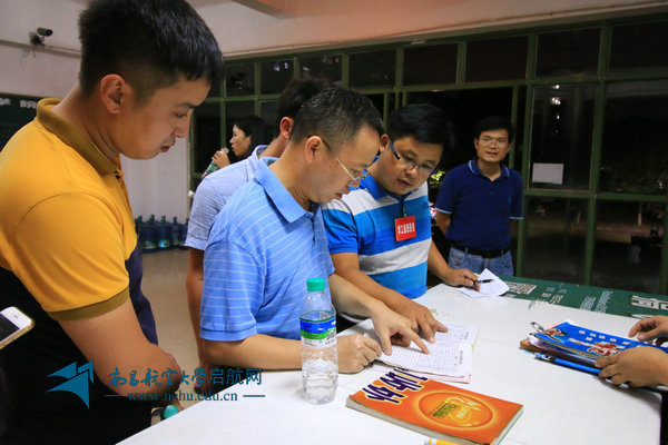 何兴道在宿管处检查学工干部宿舍走访的签到记录(图/学工处)
