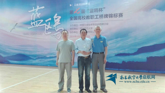 南昌航空大学信息工程学院陈培明、软件学院赵希圣、财务处退休职工万先锋等三位老师组成教职工队参赛,经过三天10轮激烈对决,荣获季军的好成绩。