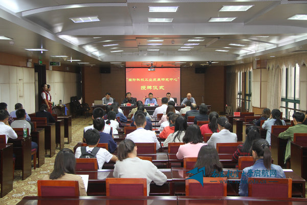 启航网讯 10月24日,“国防科技工业发展研究中心”授牌仪式在学校办公大楼六楼视频会议室举行。校长罗胜联、省国防科技工业办公室副主任瞿小华、综合处处长涂民,学校科技处、宣传部、人事处等职能部门负责人,经济管理学院相关负责人及部分师生参加仪式。
